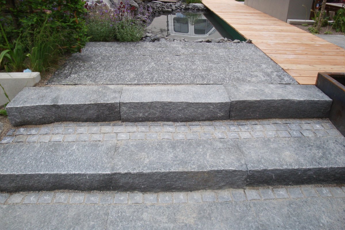 Mit Blockstufen aus Naturstein werden in der modernen Gartengestaltung Terrassen- und Hauszugänge sowie Treppen im Außenbereich errichtet. Blockstufen erhalten Sie in verschiedenen Materialien und in unterschiedlichen Längen. Blockstufen sind auch in Sondermaßen erhältlich. Passend zu unseren Blockstufen bieten wir auch Terrassenplatten an.